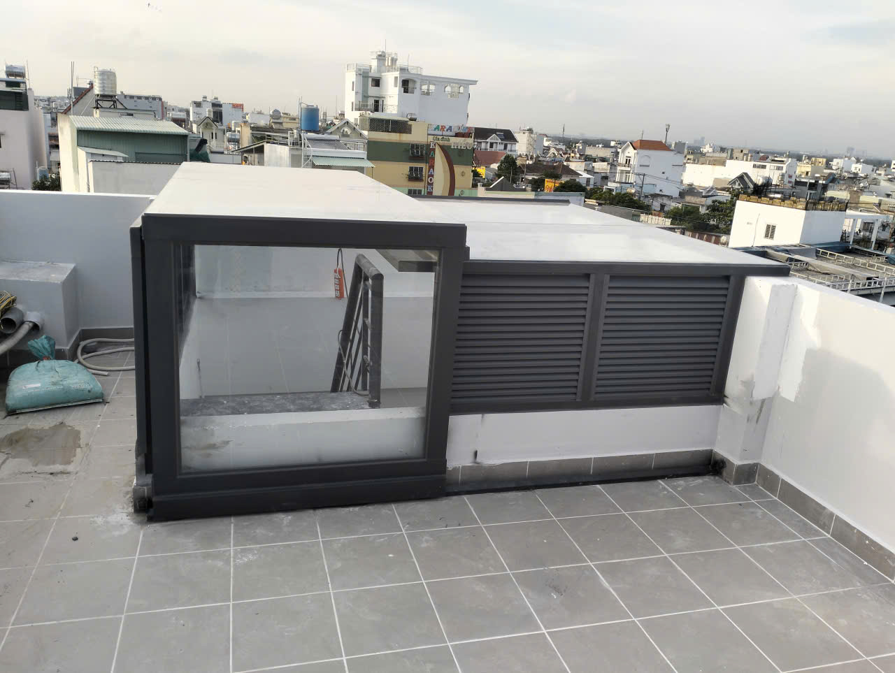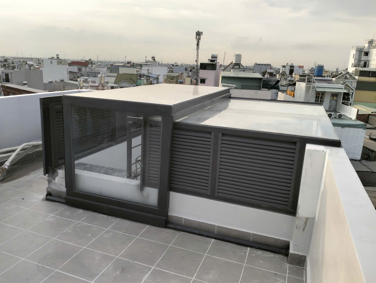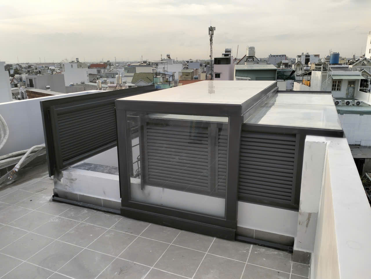 Mái có sử dụng thêm lá sách nhôm để lấy gió khi đóng mái giúp cho ngôi nhà luôn được thông thoáng.mát mẻ ,dễ chịu.