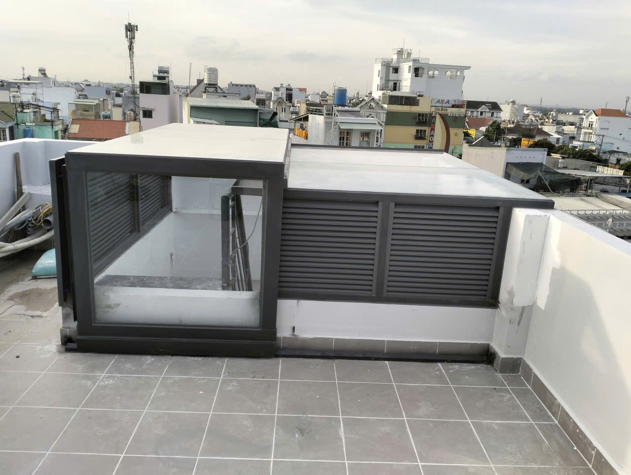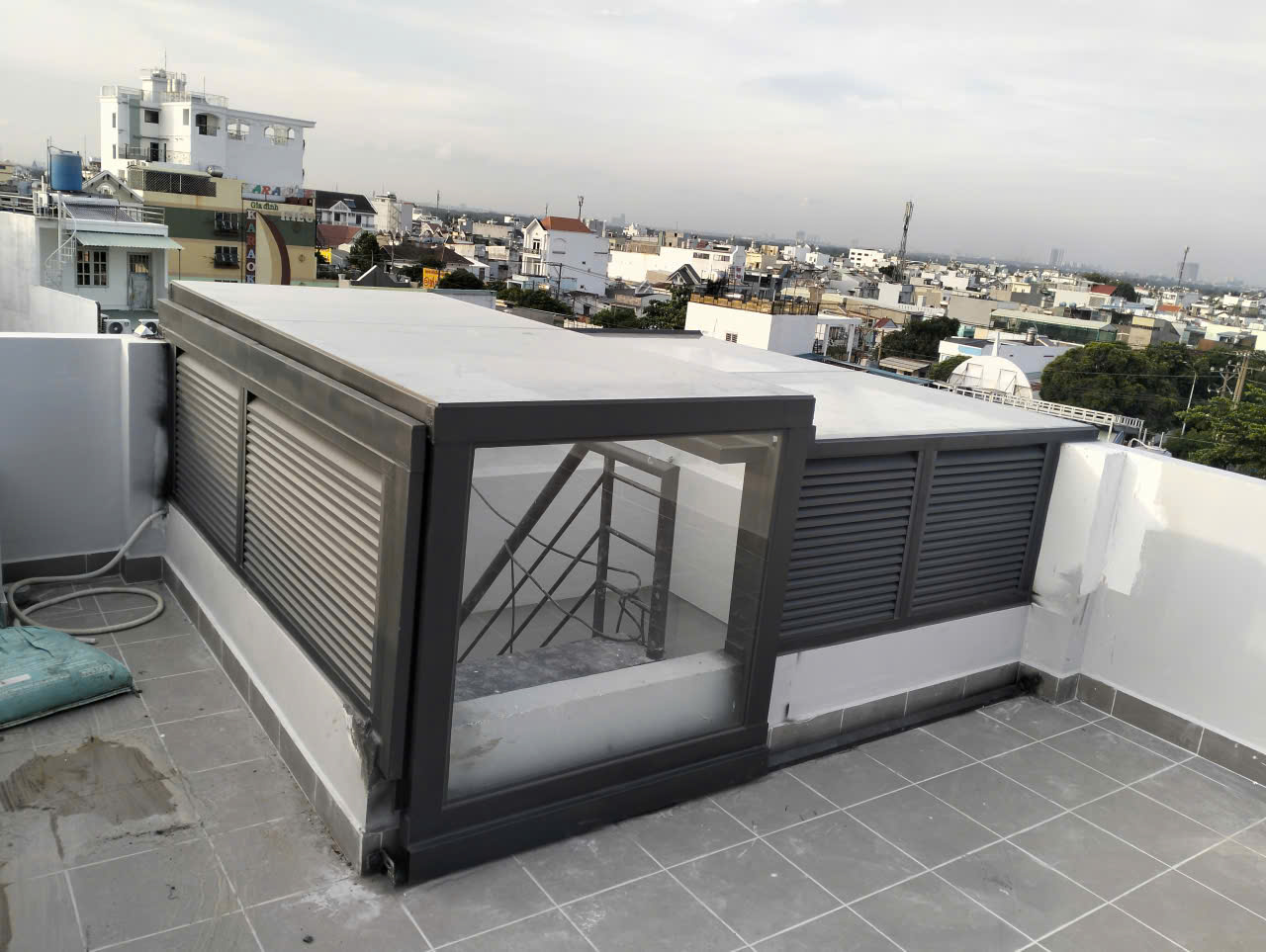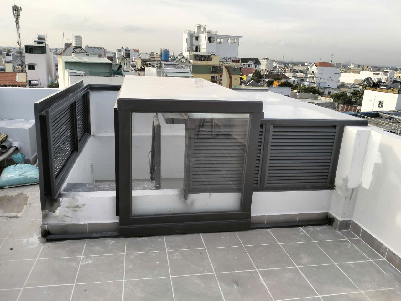 Mái có sử dụng thêm lá sách nhôm để lấy gió khi đóng mái giúp cho ngôi nhà luôn được thông thoáng.mát mẻ ,dễ chịu.